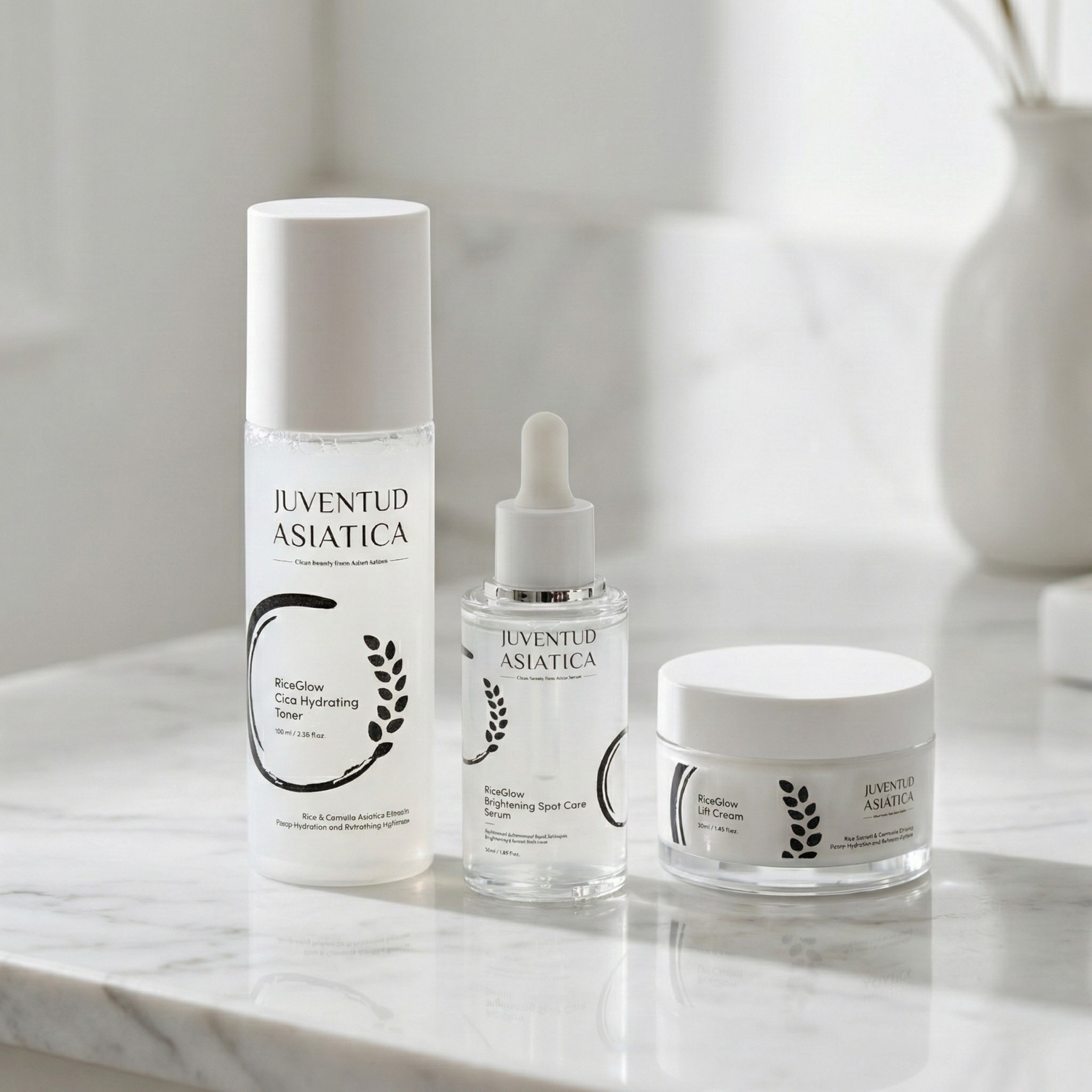 Nos comprometemos a ofrecer el "Set Juventud Asiática", diseñado para cuidar tu piel paso a paso. Brinda hidratación, combate manchas y mejora la elasticidad, aportando una juventud total.